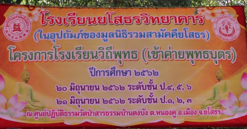 โรงเรียนยโสธรวิทยาคาร ได้จัดโครงการโรงเรียนวิถีพุทธ (ค่ายพุทธบุตร) ปีการศึกษา 2562 **วันที่ 20 มิถุนายน ** ระดับชั้น ป.4 - 6