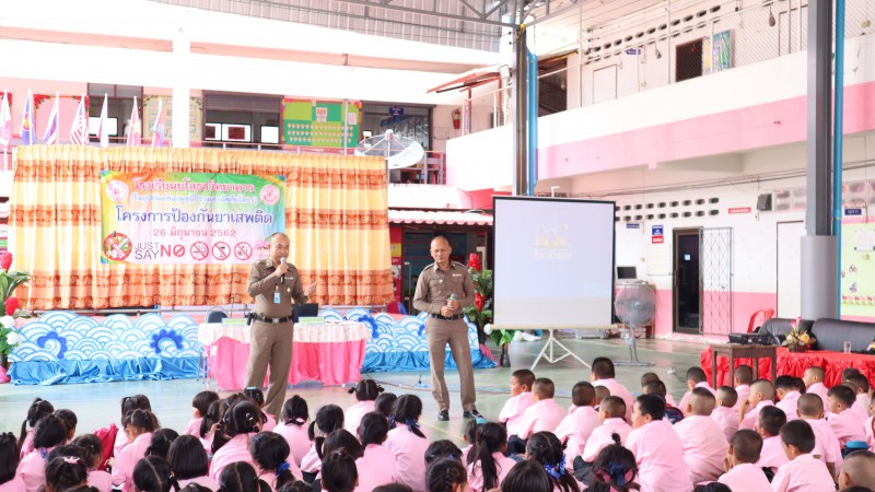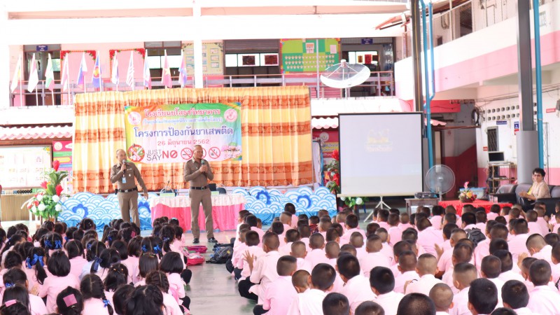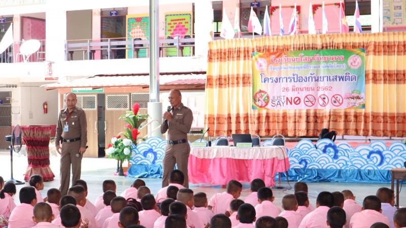 กิจกรรมวันต่อต้านยาเสพติด โดยมีเจ้าหน้าที่ตำรวจ จากสถานีตำรวจภูธรเมืองยโสธร มาให้ความรู้กับนักเรียน ในวันพุธ ที่ 26 มิถุนายน 2562