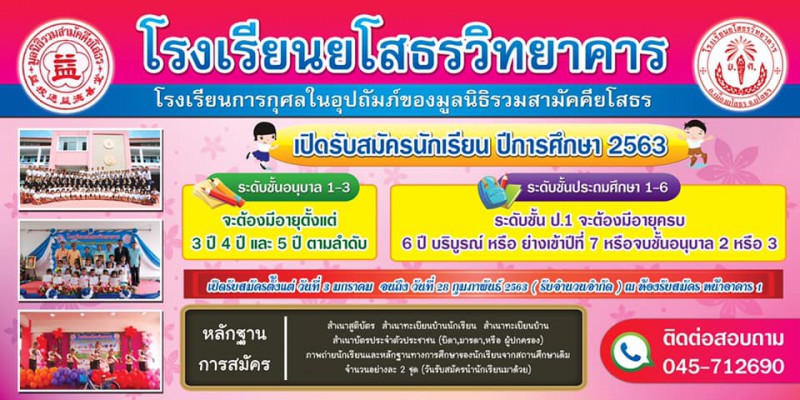 **** เปิดรับสมัครนักเรียนใหม่ ปีการศึกษา 2563