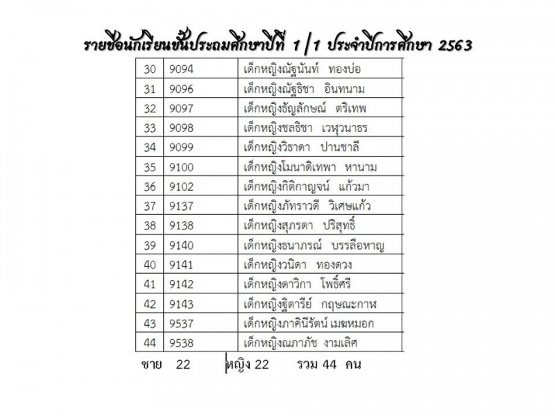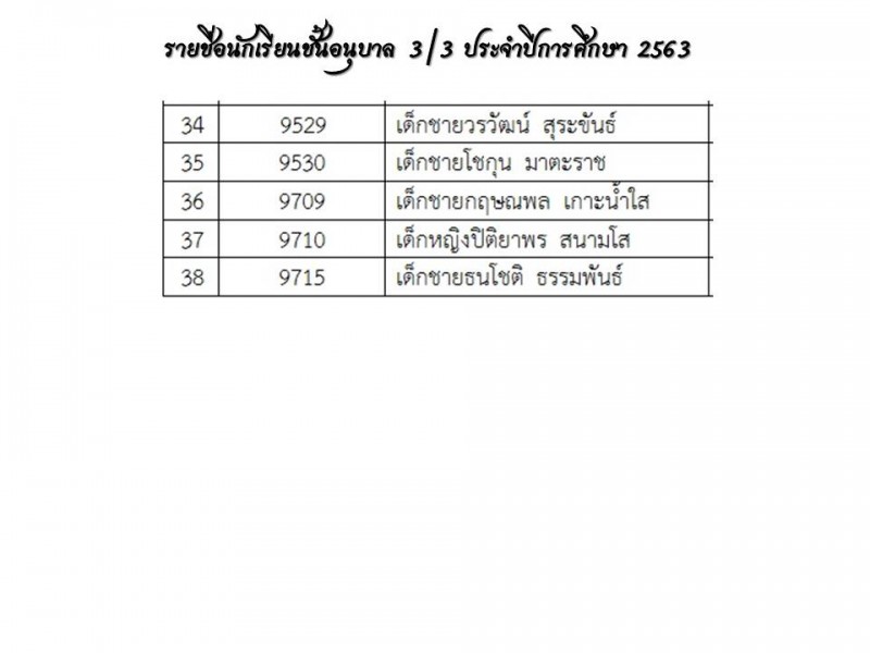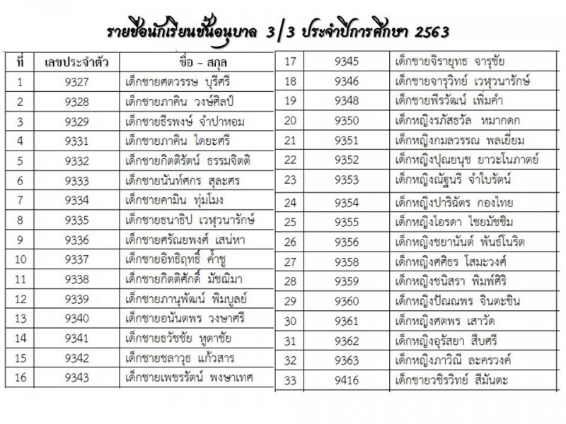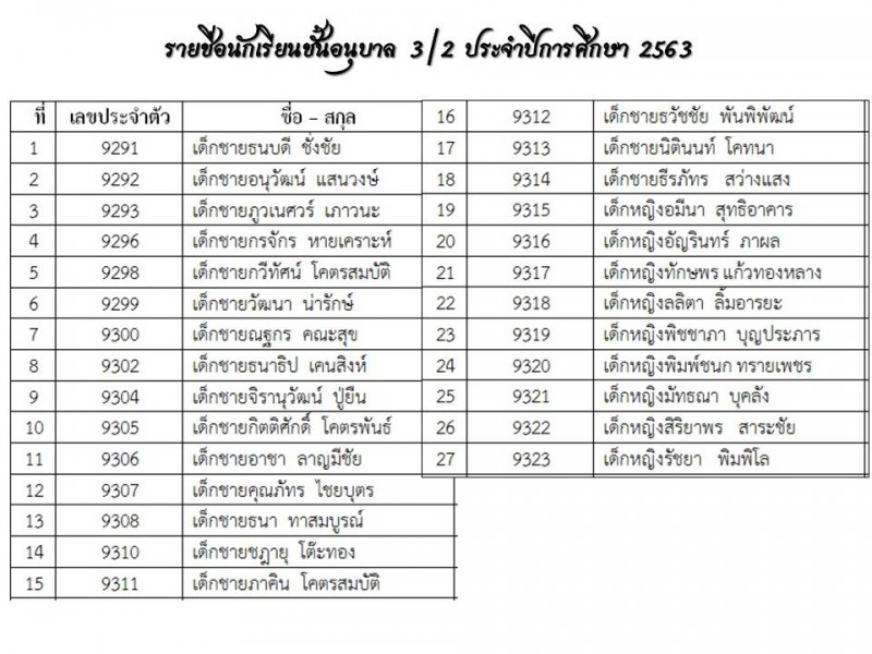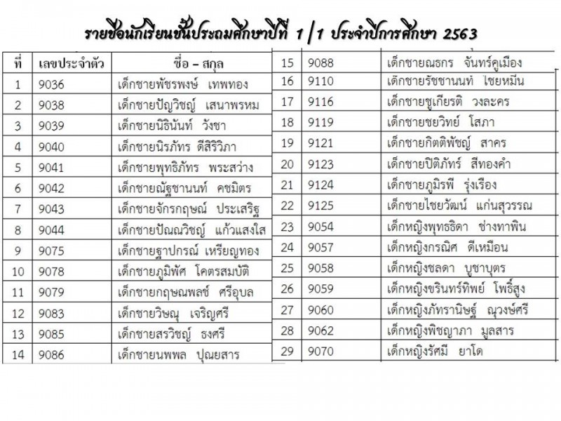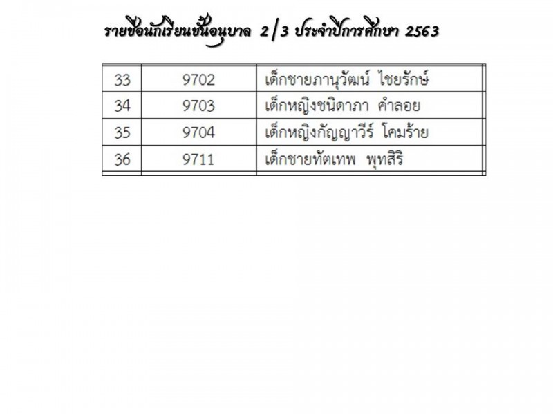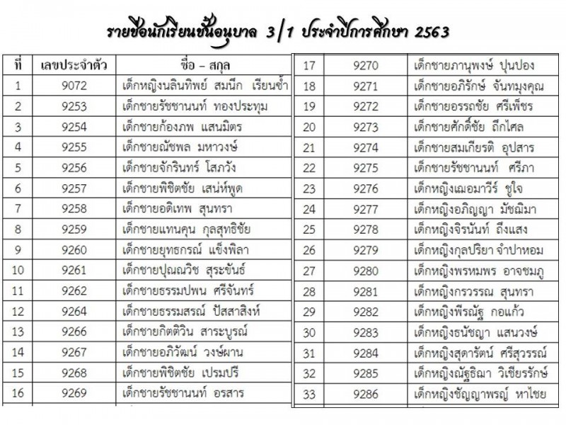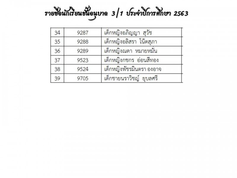 **แนะนำครูประจำชั้นและรายชื่อนักเรียน ปีการศึกษา 2563