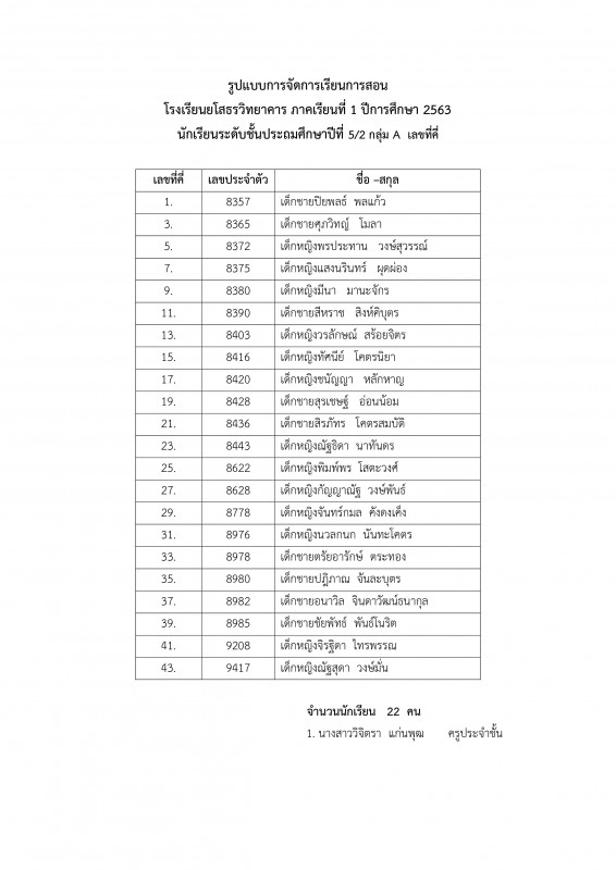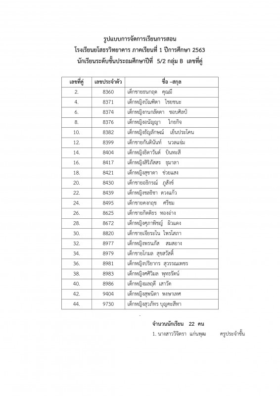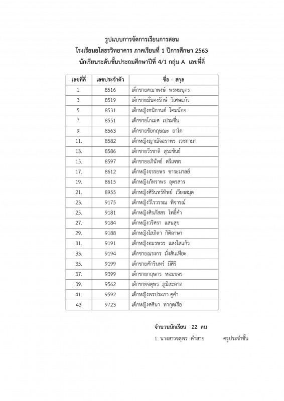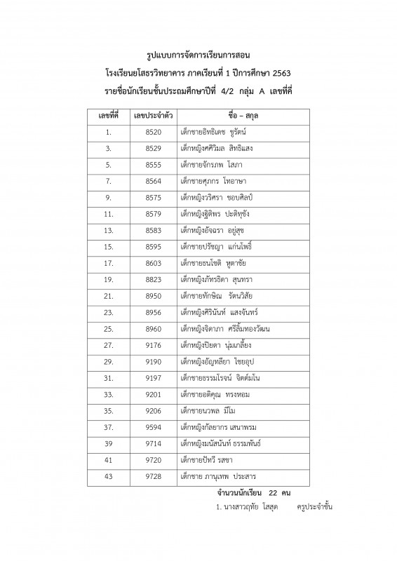 รายชื่อนักเรียนระดับชั้น ป.1 - 6