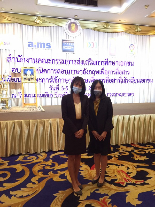 คุณครูจตุพร คำสาย และคุณครูณัฐพร ศิลปไชย ได้เข้าร่วมอบรมเทคนิคการสอนภาษาอังกฤษเพื่อการสื่อสาร โครงการพัฒนาทักษะการใช้ภาษาอังกฤษเพื่อการสื่อสารในโรงเรียนเอกชน ณ โรงแรมมณเฑียร ริเวอร์ไซด์ กรุงเทพฯ วันที่3-5 ส.ค 63