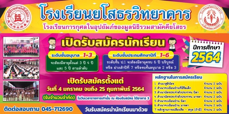 โรงเรียนยโสธรวิทยาคาร รับสมัครนักเรียนใหม่ ปีการศึกษา 2564 ตั้งแต่วันที่ 4 มกราคม จนถึง วันที่ 25 กุมภาพันธ์ 2564 #รับจำนวนจำกัดค่ะ