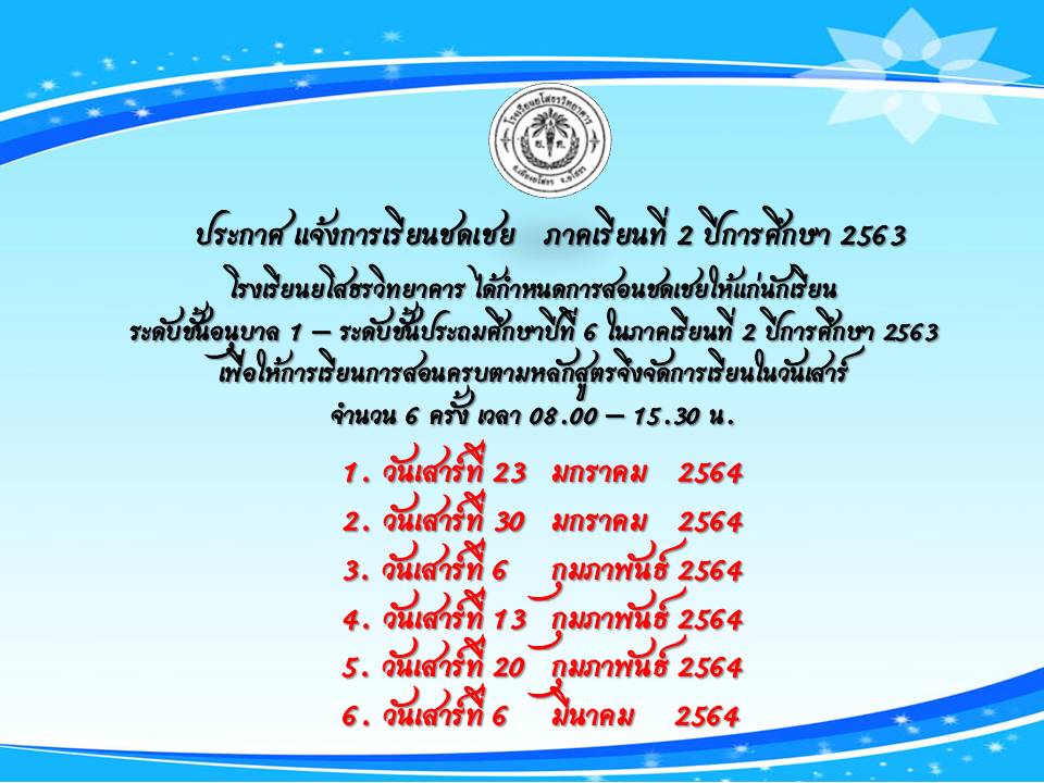 ประกาศ แจ้งการเรียนชดเชย ภาคเรียนที่ 2 ปีการศึกษา 2563