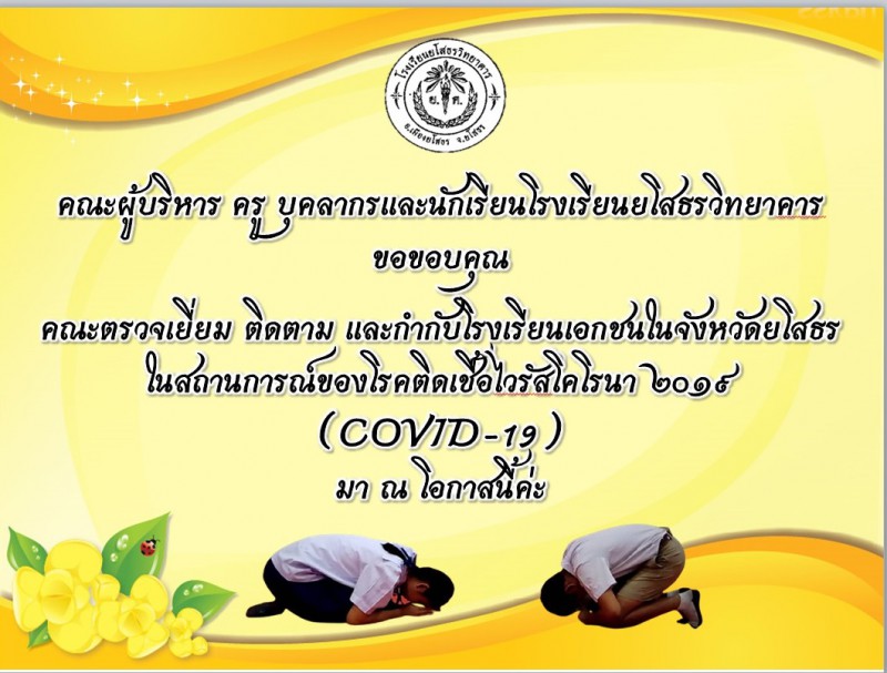 ยินดีต้อนรับคณะตรวจเยี่ยม ติดตาม และกำกับโรงเรียนเอกชนในจังหวัดยโสธรในสถานการณ์ของโรคติดเชื้อไวรัสโคโรนา ๒๐๑๙ (COVID - 19)
