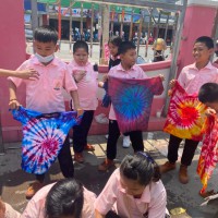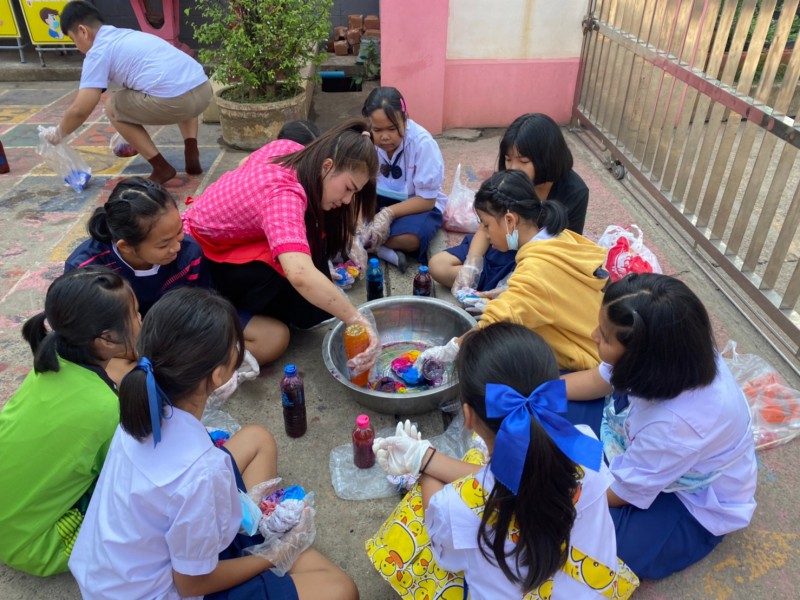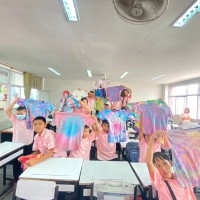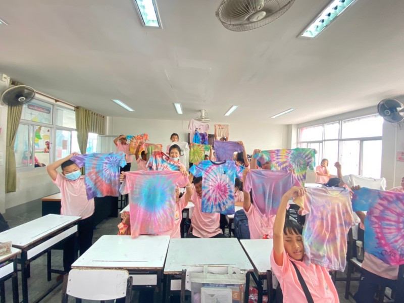 ได้ให้นักเรียนจัดทำเสื้อมัดย้อม