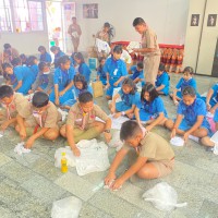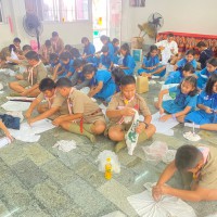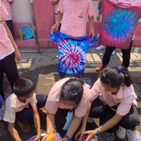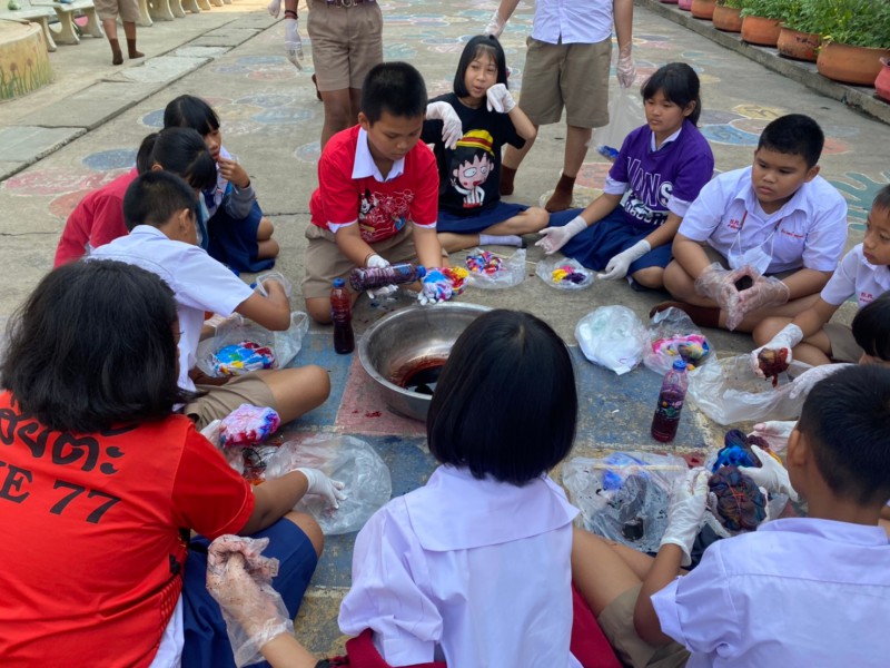 กิจกรรมการเรียนการสอนของนักเรียนระดับชั้นประถมศึกษาปีที่ 5 วิชาการงานอาชีพ โดยคุณครูวิจิตรา แก่นพุฒ ได้ให้นักเรียนจัดทำเสื้อมัดย้อม
