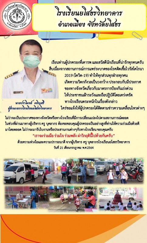 ฝากความห่วงใยและความปรารถนาดี จากผู้บริหาร ครู บุคลากรโรงเรียนยโสธรวิทยาคาร “เราจะร่วมมือ ร่วมใจ ร่วมพลัง ฝ่าวิกฤตินี้ไปด้วยกัน”