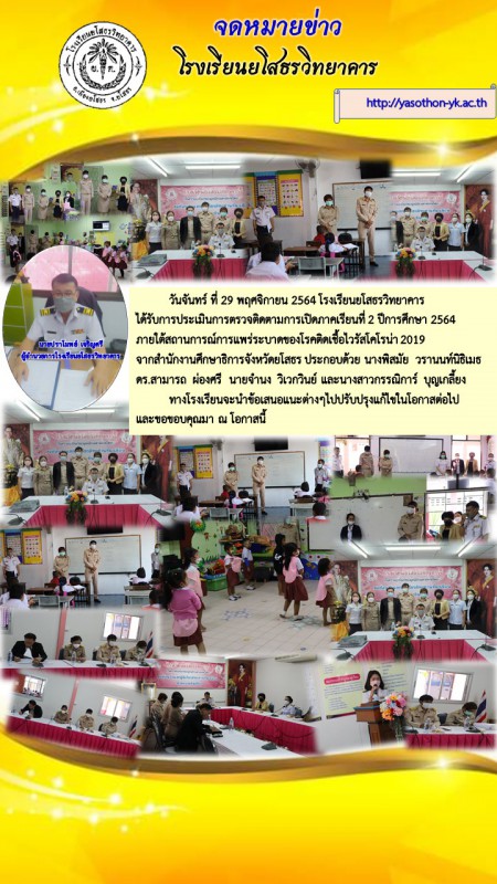 การประเมินการตรวจติดตามการเปิดภาคเรียนที่ 2 ปีการศึกษา 2564 ภายใต้สถานการณ์การแพร่ระบาดของโรคติดเชื้อไวรัสโคโรน่า 2019 จากสำนักงานศึกษาธิการจังหวัดยโสธร