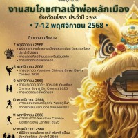 ขอเชิญเที่ยวชม และร่วมกิจกรรม.. งานสมโภชศาลเจ้าพ่อหลักเมืองจังหวัดยโสธร (งานงิ้ว) ประจำปี 2568 ระหว่างวันที่ 7-12 พฤศจิกายน พ.ศ. 2568 ณ บริเวณศาลเจ้าพ่อหลักเมืองจังหวัดยโสธร กิจกรรมบนเวทีกลาง