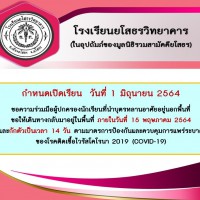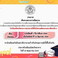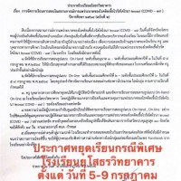 ประกาศเรื่องหยุดเรียนกรณีพิเศษเนื่องในสถานการณ์การแพร่ระบาดของโรคติดเชื้อไวรัสโคโรนา 2019 (COVID-19) ตั้งแต่ วันที่ 5 - 9 กรกฎาคม พ.ศ.2564