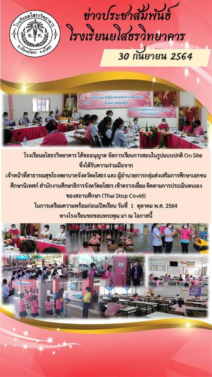 สำนักงานศึกษาธิการจังหวัดยโสธร เข้าตรวจเยี่ยม ติดตามการประเมินตนเองของสถานศึกษา (Thai Stop Covid) ในการเตรียมความพร้อมก่อนเปิดเรียน วันที่