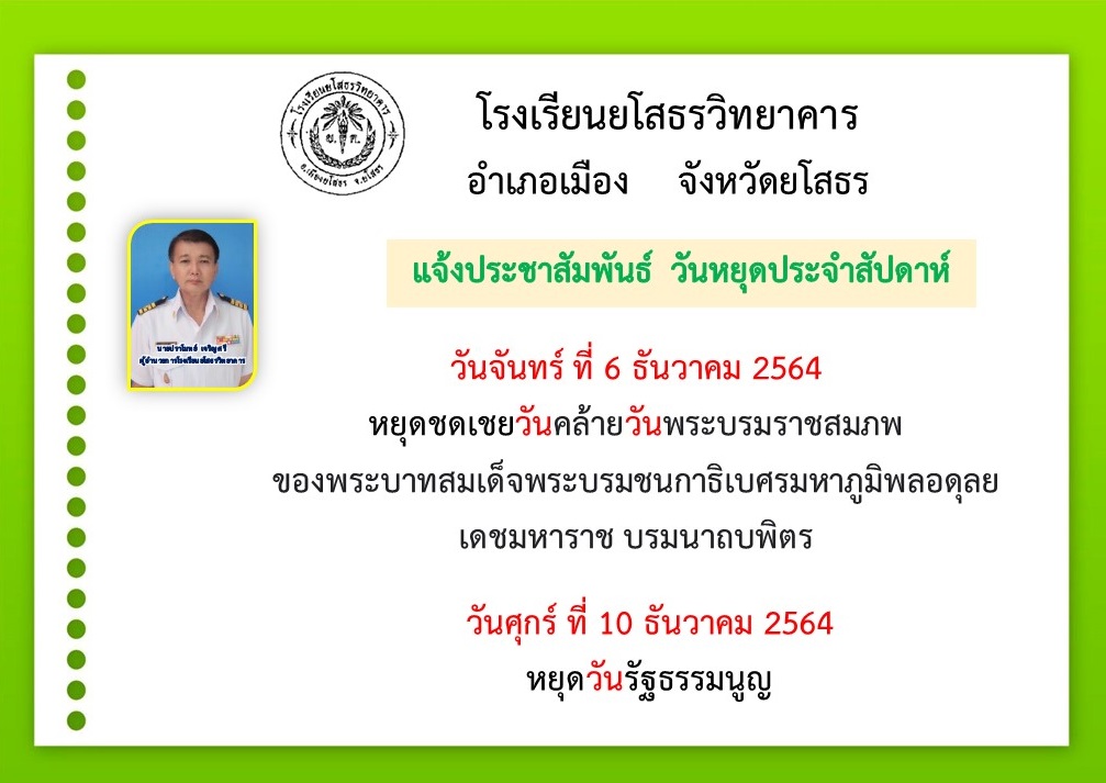 แจ้งประชาสัมพันธ์ วันหยุดประจำสัปดาห์
